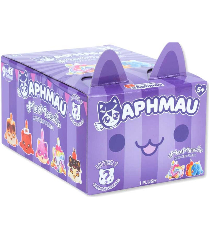 - Mystery blind box containing one Aphmau Carnival Treats Litter 7 MeeMeows Mystery 6 Inch Plush.