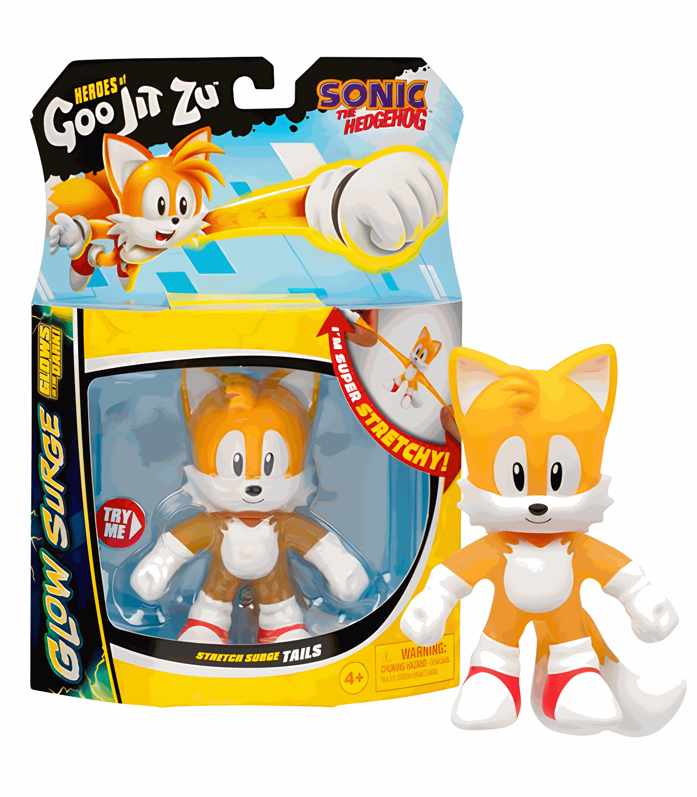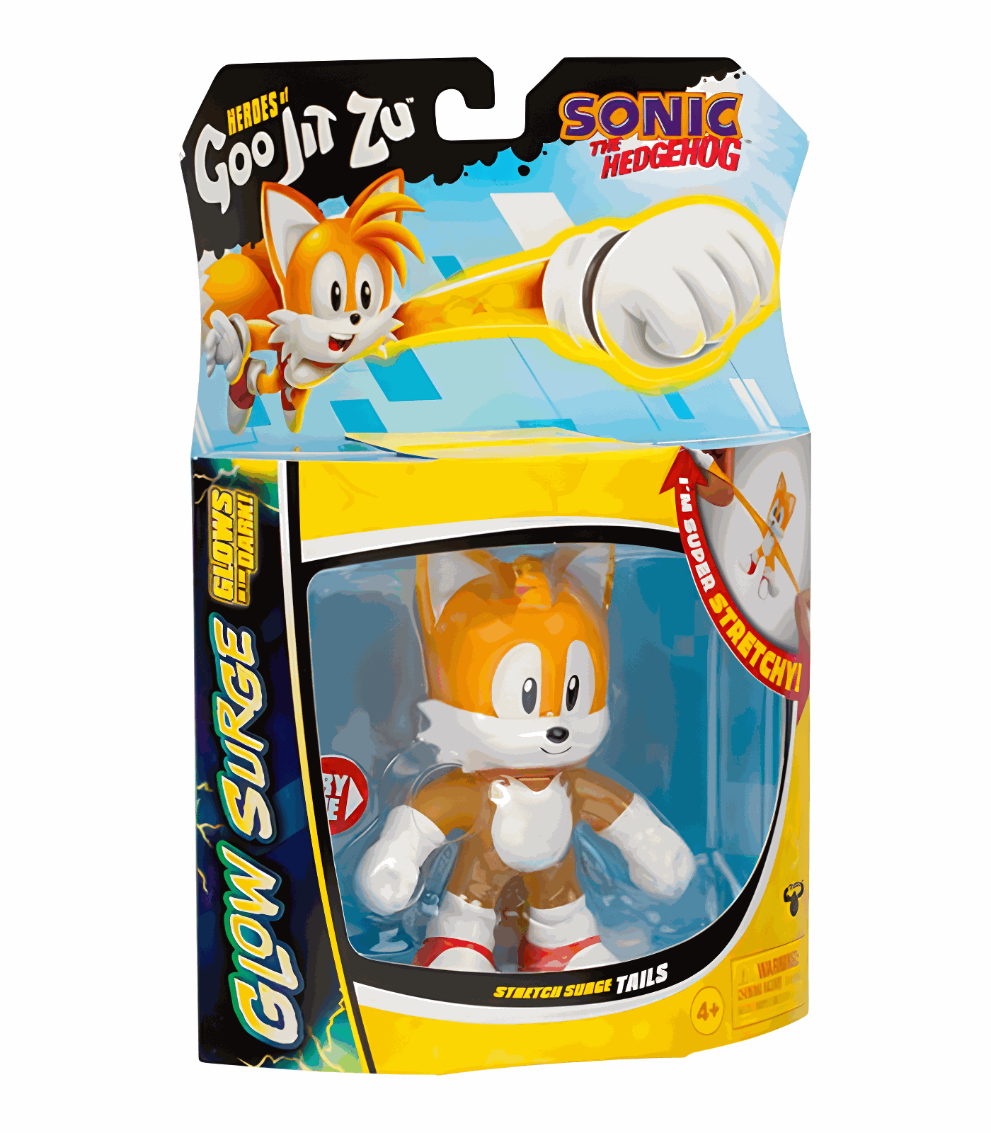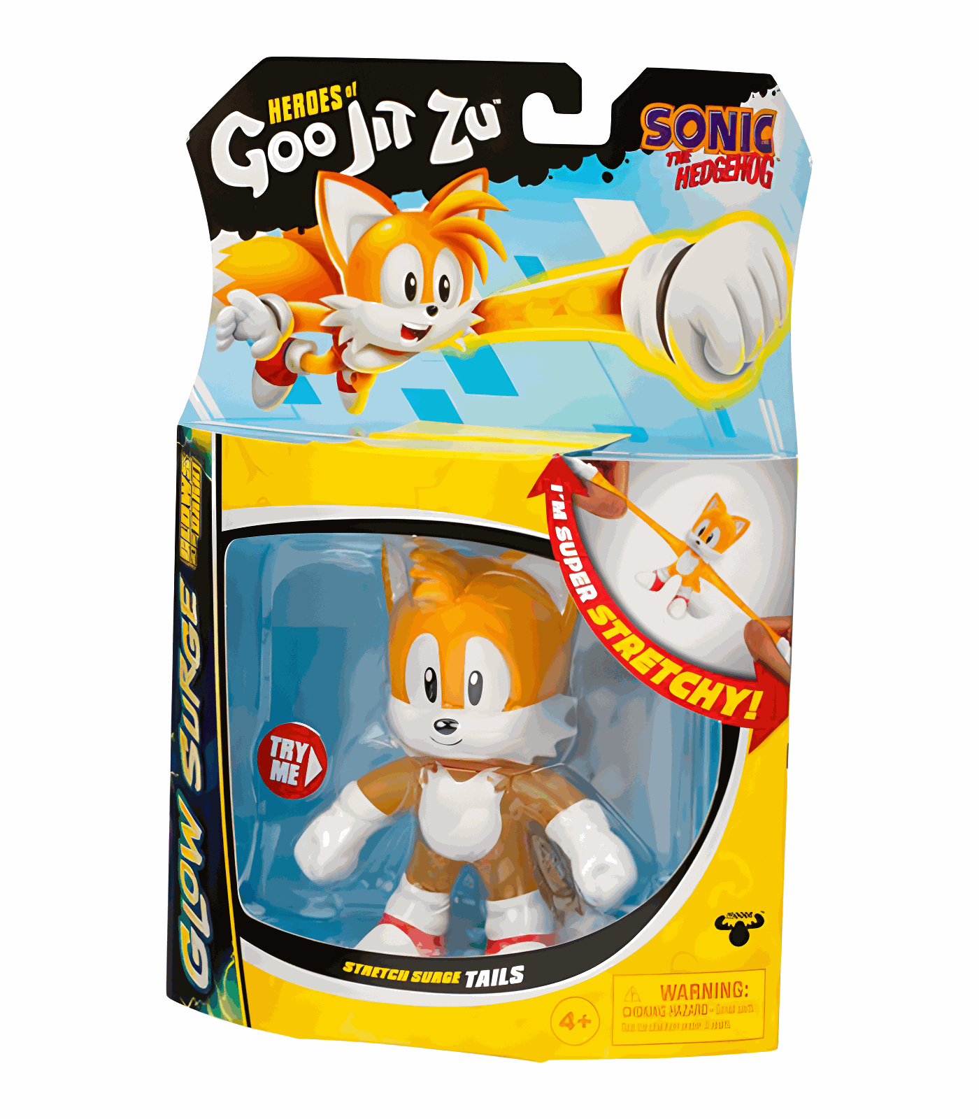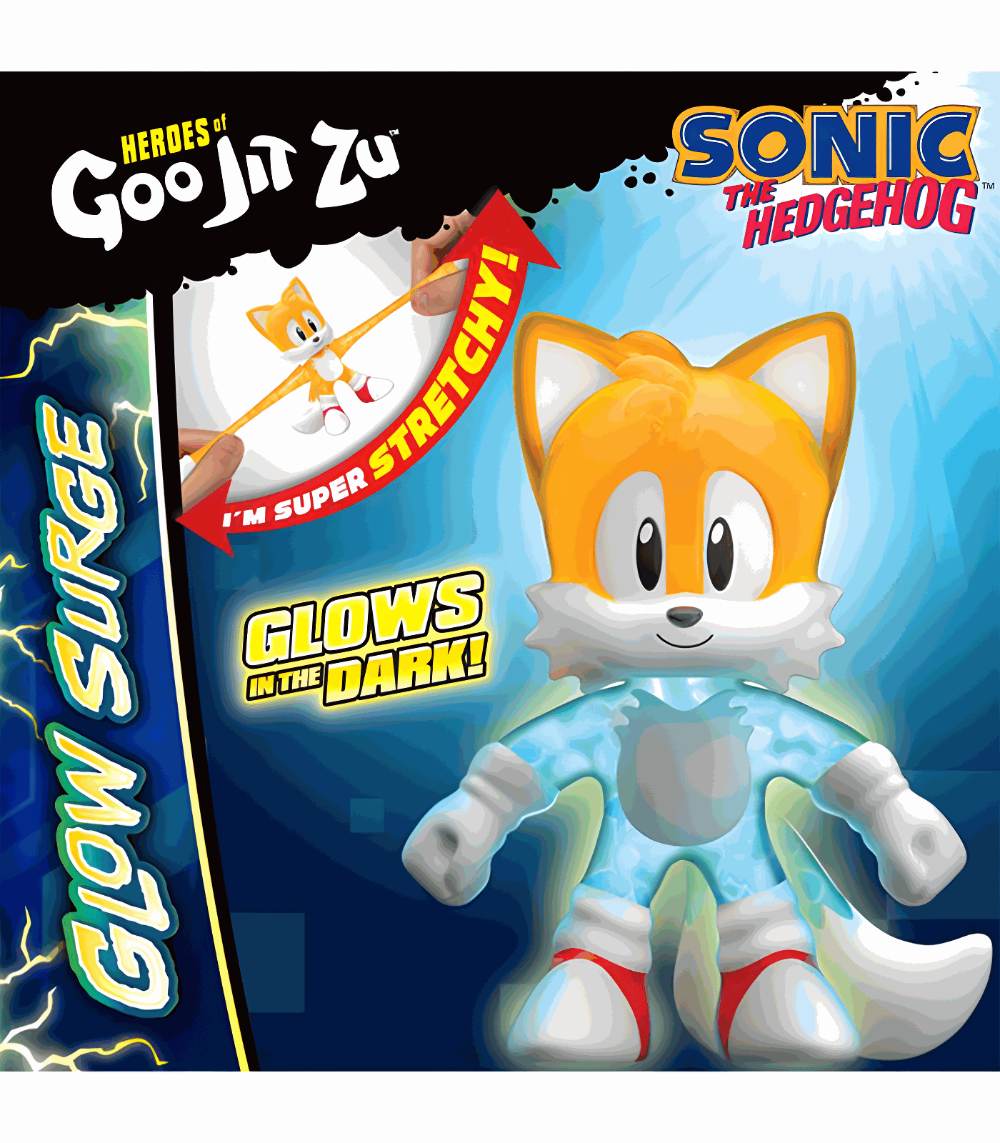Made from durable materials, the Tails figure is built to withstand endless stretching and squeezing. As part of the Heroes of Goo Jit Zu Sonic Glow Surge collection, Tails brings hours of fun for Sonic fans who love stretchy, gooey, and glowing action!
