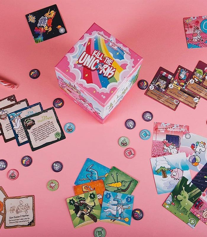 In the box, players will find everything needed to immerse themselves in the competitive world of unicorn hunting. The Kill The Unicorns Game promises laughter, strategic thinking, and a touch of fantasy, making it a delightful addition to any game collection.