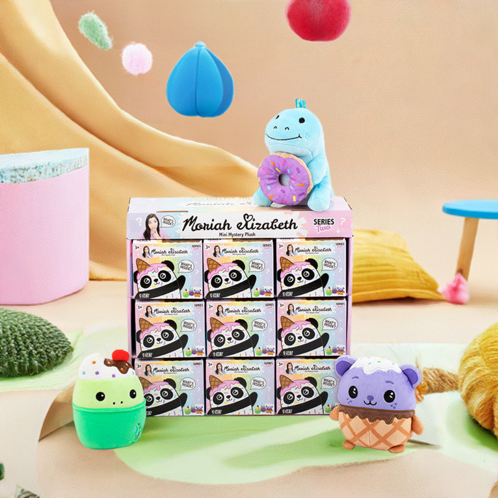 Discover the sweet and squishy world of Moriah Elizabeth with the Moriah Elizabeth Mini Mystery Plush Series 2! Inspired by the beloved YouTube creator's colorful and whimsical characters, this new series is all about desserts! Each plush is a surprise, with 8 adorable dessert-themed characters to collect, including Georgie, Derp, Pickle, Shelly, Nilla, Eustace, Scoopsie, Sprinkle Panda, and Cuepy. These cute and cuddly mini plushies are perfect for fans of Moriah Elizabeth who want to bring her characters to life in a soft, huggable form.