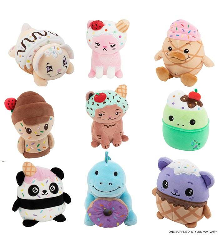 - 8 dessert-themed mini plush characters to collect: Georgie, Derp, Pickle, Shelly, Nilla, Eustace, Scoopsie, Sprinkle Panda, and Cuepy.