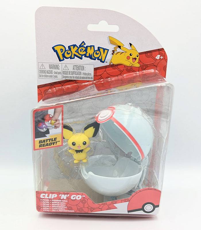 This Pokémon Clip 'N' Go set comes complete with action ready Pichu and Premier Ball. When Pichu has finished in battle, store him back in his very own Premier Ball and attach it to your Pokémon Clip 'N' Go belt (Pokémon Clip 'N' Go belt sold separately).