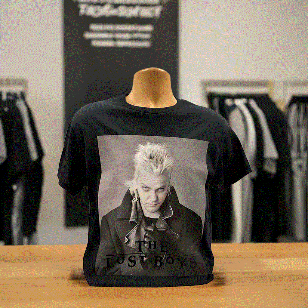 - Officially licensed Lost Boys t-shirt featuring Kiefer Sutherland as David.