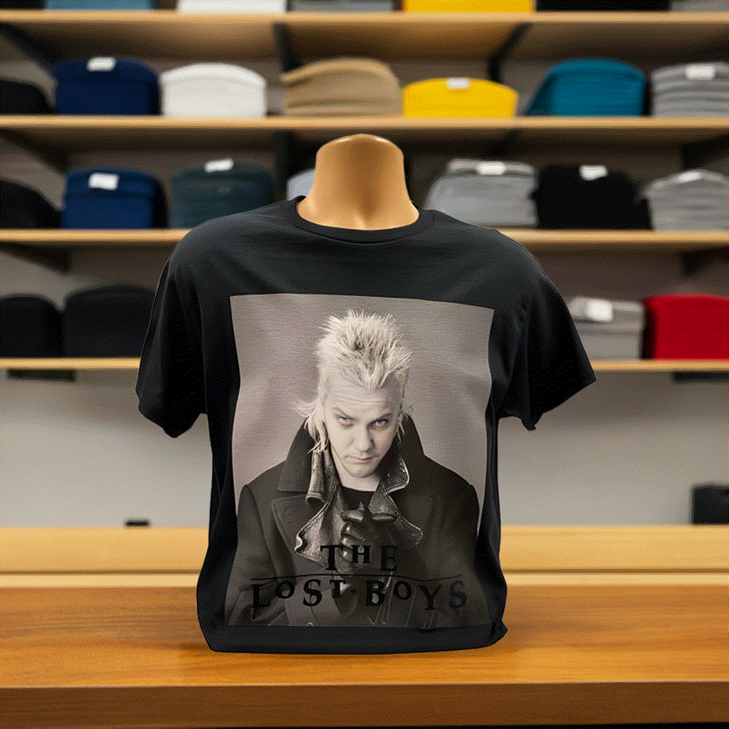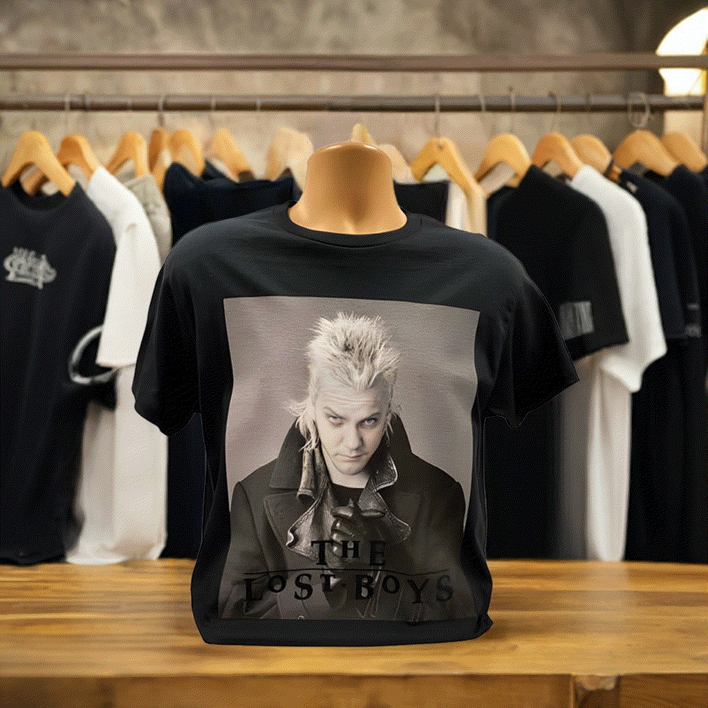 - Officially licensed Lost Boys t-shirt featuring Kiefer Sutherland as David.