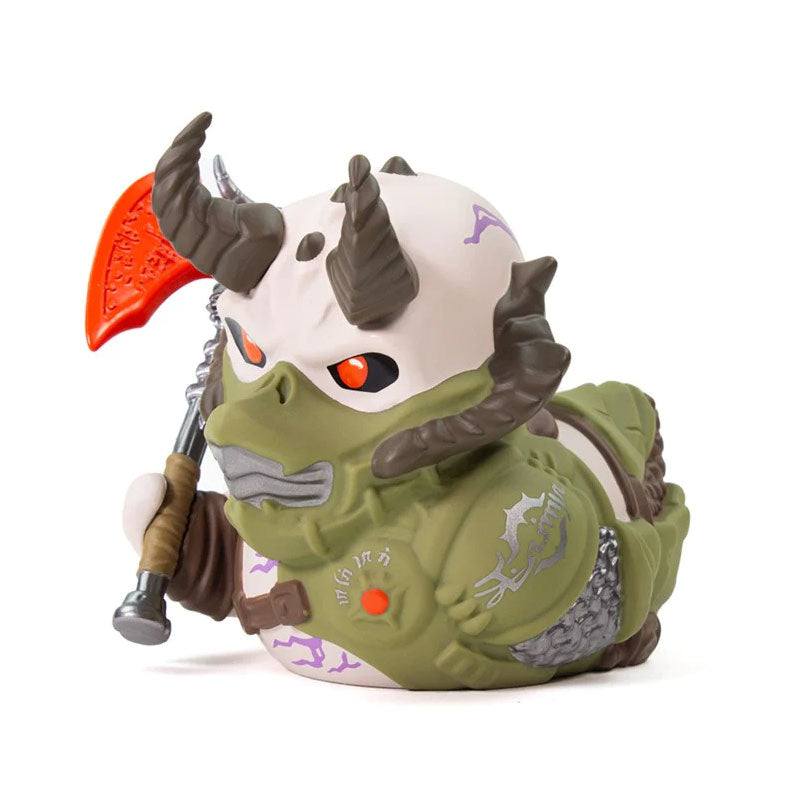 The TUBBZ Doom Marauder Collectible Duck is the perfect way to show your love for the iconic DOOM franchise. This officially licensed duck is dressed in the Marauder's iconic armor, complete with a garland of skulls around its thigh, and a double-bladed battle axe.