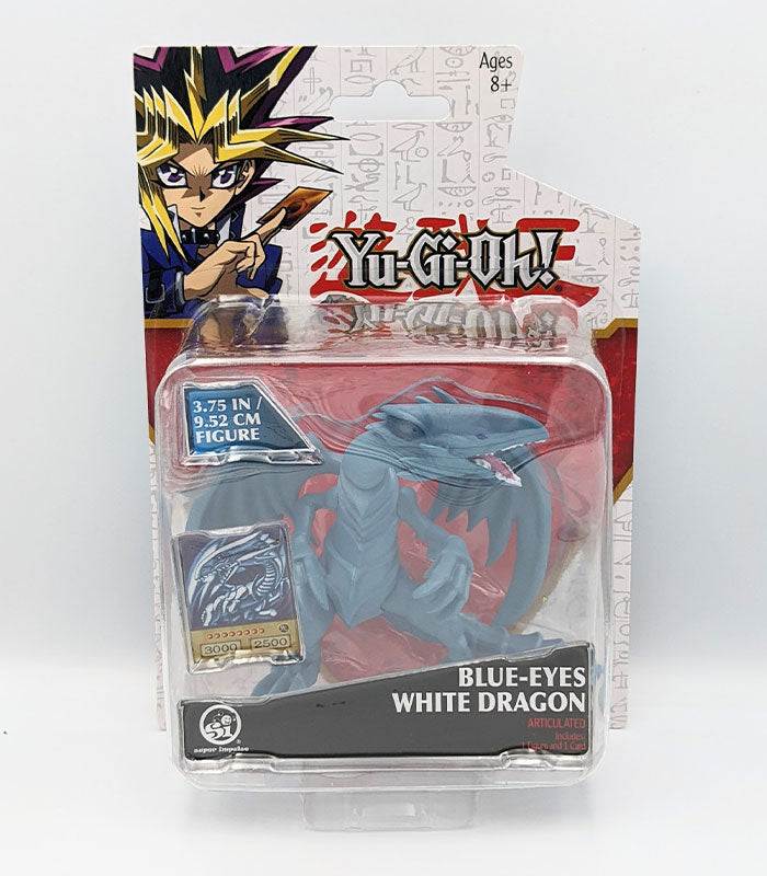This 3.75inch Blue Eyes White Dragon Yu-Gi-Oh! Figure comes complete with an exclusive card. Showcasing epic detail, this articulated Blue Eyes White Dragon is ideal for recreating some epic Yu-Gi-Oh! Battle scenes.
